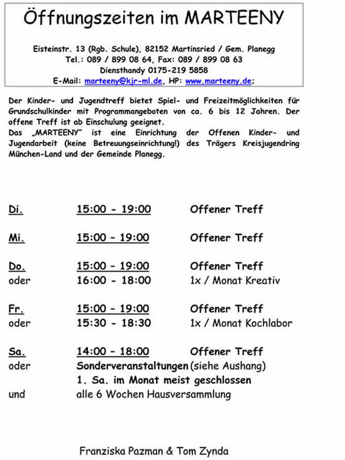Zum Besuch des Marteeny reichen die normal üblichen Hygieneregeln und bitte nicht mit ansteckenden Krankheiten (Erkältung, Grippe,...) ins Marteeny kommen. (Stand 16.10.25) |